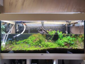 Čistenie dna, koreňov a kameňov prebieha veľmi jednoduchým spôsobom pomocou čerpadla. Pri výmene vody vyčistite aj povrch a povysávate dno a tak odstránite nečistoty. Používanie akýchkoľvek chemických prípravkov môže ohroziť všetko, čo sa v akváriu nachádza.